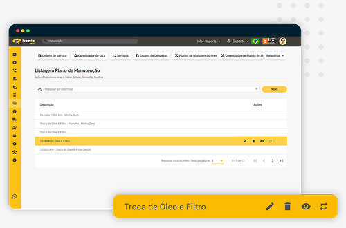 Agende manutenções preventivas e corretivas da frota e reduza custos inesperados.